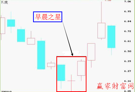 定義:早晨之星又稱為“黎明之星”、“希望之星”,在生活中指的就是在太陽尚未升起的時(shí)候,黎明前最黑暗的時(shí)刻,一顆明亮的啟明星在天邊指引著那些走向光明的夜行人,預(yù)示前途光明,美好終將到來。而在股市里該形態(tài)則是由三根K線組成的
