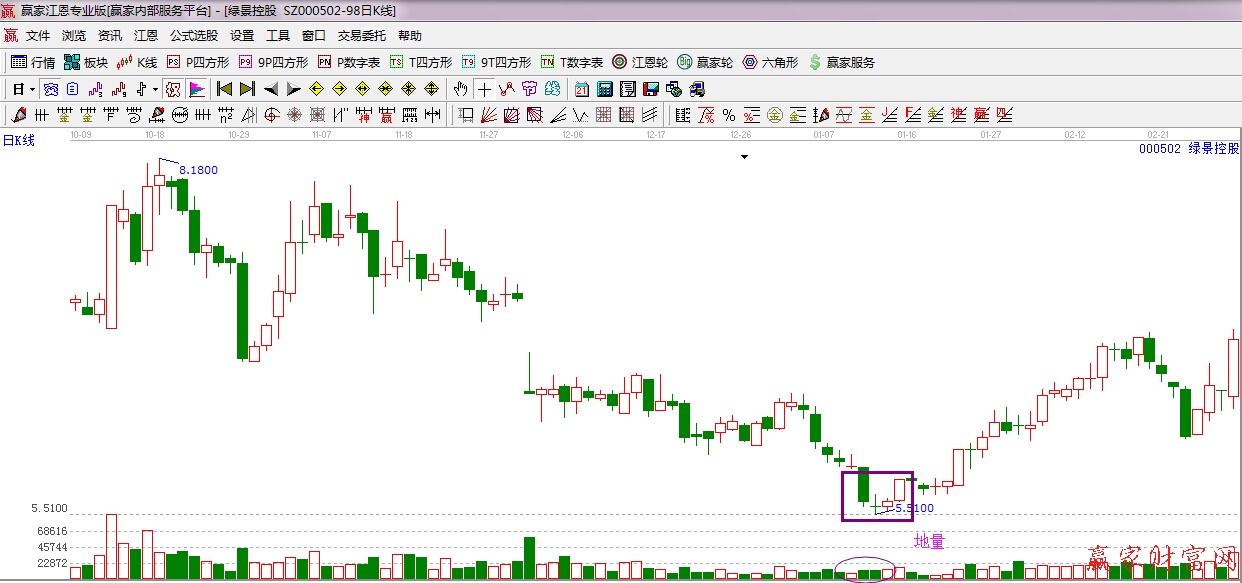 我們從圖中可以發(fā)現(xiàn),當(dāng)此模式出現(xiàn)時(shí),相應(yīng)的它的成交量也出現(xiàn)地量,對投資者來說。這是最好的抄底價(jià)格,可以進(jìn)行買入,因?yàn)榭梢源_定后市是必然上漲的。