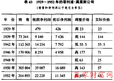 在1929年至1939年間,當幾乎所有公司利潤下降的同時,菲利浦公司的稅前利潤增長了20倍。這是企業的巨大成功。7年以后,公司凈利潤明顯下降,但市場上投資熱情依然高漲。1946年股市價格高達企業前盈利的27倍,是當年盈利的3.5倍。從那個水平起到1948年初,股價下跌了2/3,比其他領導股下跌幅度大得多。這明顯是投機者對公司變化反應滯后的表現。隨后公司的銷售額和利潤均有大幅增加,但有意義的是,1950年至1953年的牛市高價并沒有超過1938年至1946年的最高點。