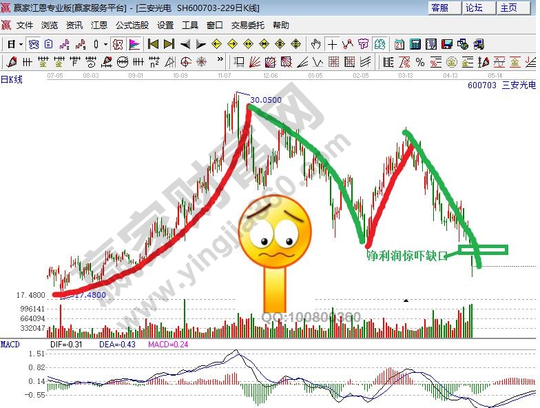 問題二:還有4月26日三安光電公布2018年一季度數據,凈利潤同比增長40.14%,股價跳空低開,盤中一度觸及跌停,從3月12日算起一波下跌32%。