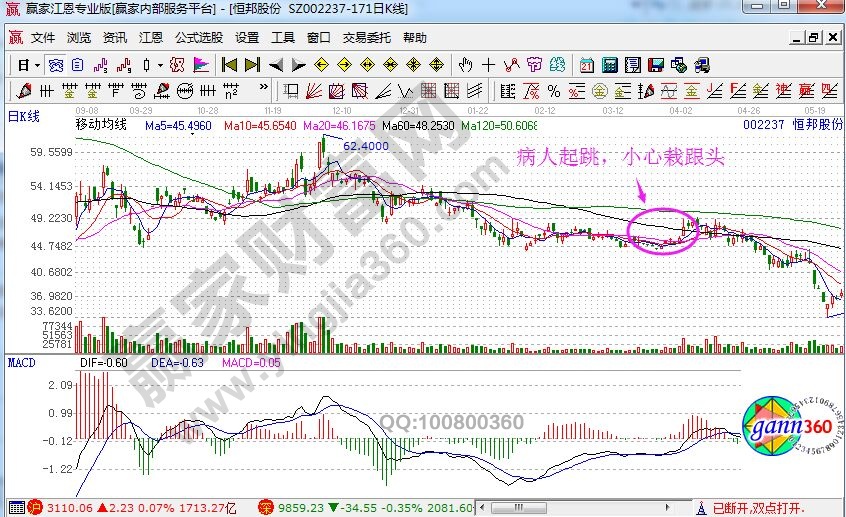 當(dāng)然如果是在大幅下跌之后的助跑起跳,介入的時(shí)間不能太長(zhǎng),一般獲利就要跑了,這其實(shí)就好比一個(gè)病人,就算助跑非常好,但是也不一定非常成功,畢竟本身的體質(zhì)決定了力道。下面的恒邦股份走勢(shì)圖,就是一個(gè)典型案例。