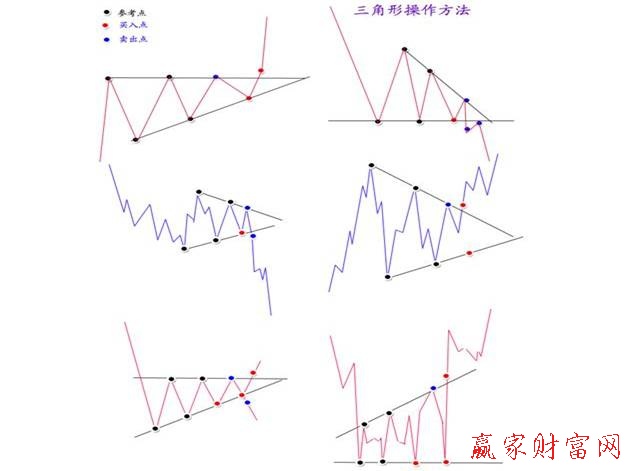 2股價變動演變成對稱三角形時,供需雙方得以在此獲得調節(jié),要買的人可用類似價格分天買進較多的股票,要賣的人亦有時間將大筆額子分天出清,而價格相差也不多,等到實力派買進或賣出足夠的額子時,股價波動再次興起,突破對稱三角形而上升或下跌。因此,對稱三角形完成后的上升或下跌是另一次極佳的買進或賣出時機。