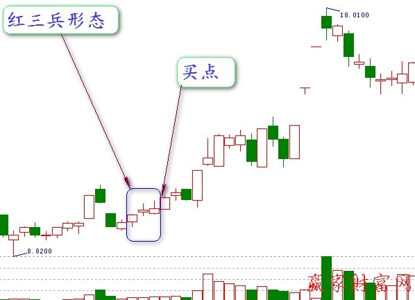 紅三兵形態(tài)又稱為三紅兵形態(tài),它是有三根陽線組成,是一種常見的K線組合,而且這種形態(tài)出現(xiàn)一般伴隨著股價(jià)的繼續(xù)上漲,因此,是一個(gè)不錯(cuò)的標(biāo)志性買點(diǎn)。接下來介紹下,該形態(tài)下的買入技巧。