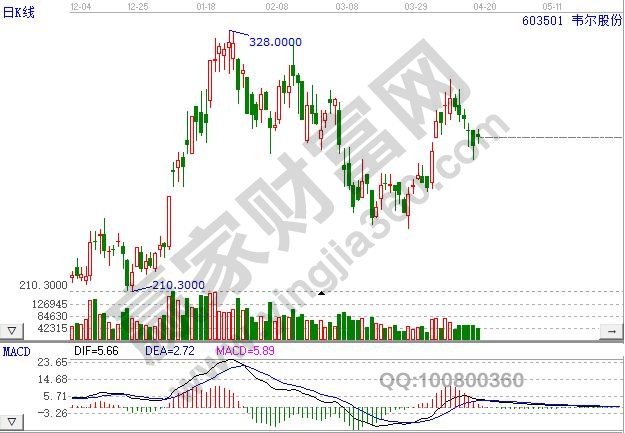 韋爾股份的股票代碼是603501,公司的主營業務是半導體機器的研發和銷售,主要產品有七百多個產品型號,包括功率器件、保護器件、集成電路等,公司現在的股票價格是279.79元。