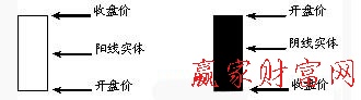 光頭光腳陽線和陰線:即沒有上影線也沒有下影線的陽線和陰線。如圖所示。