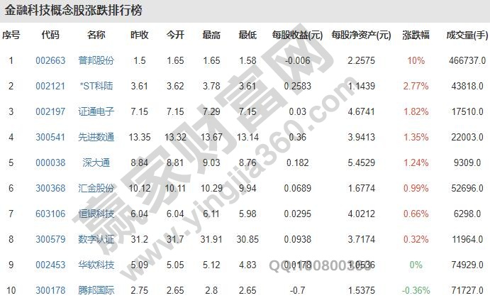 互聯網金融板塊:新湖中寶600208、恒生電子600570、同花順300033、銀之杰300085、中天城投000540、中科金財002657等
