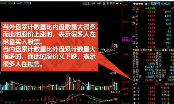 內盤證明了賣家更積極的銷售,外盤證明了買家更積極的購買。當外盤的累計數量遠遠高于內盤的時候,證明很多人都在爭搶股票,而且這只股票還有上漲的趨勢。當當內盤的累計數量遠大于外盤的時候,就證明很多人在炒股,股市有下跌的趨勢。內盤和外盤也是股市股票投資中短期選股的常用指標,往往代表股東的資金是流入還是流出股市。股市中的內盤和外盤可以簡單理解為:內盤是按買價成交,一般認為是主動賣出;外盤是按賣價成交,一般認為是主動買入。