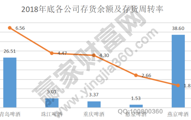 各家上市公司的周轉率有明顯的差異,青島啤酒為6.56次,燕京啤酒為1.82次,也就是說一年26.51億,青島啤酒存貨周轉了6.56次,成本為174億。一年38.60億,燕京啤酒存貨周轉了1.82次,成本為70億,也就是說青島啤酒的存貨創造收入能力遠遠高于燕京啤酒。
