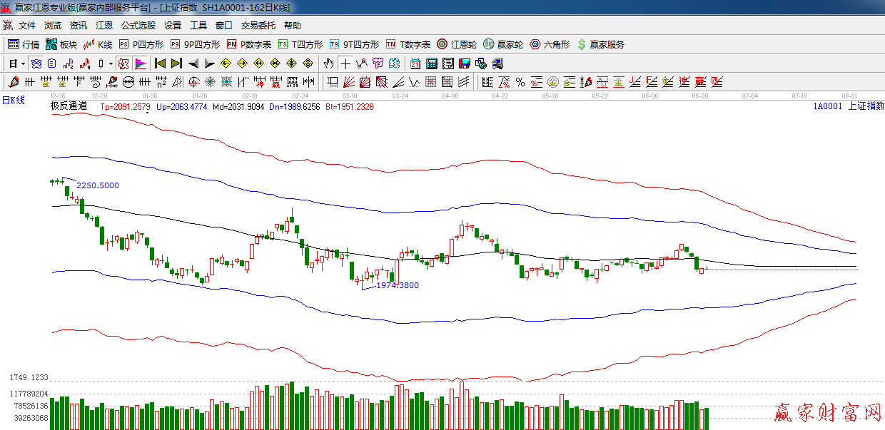 ☆依據(jù)贏家江恩系統(tǒng)極反通道提示:陰十字星報(bào)收,生命線之下弱勢區(qū)域,看空。