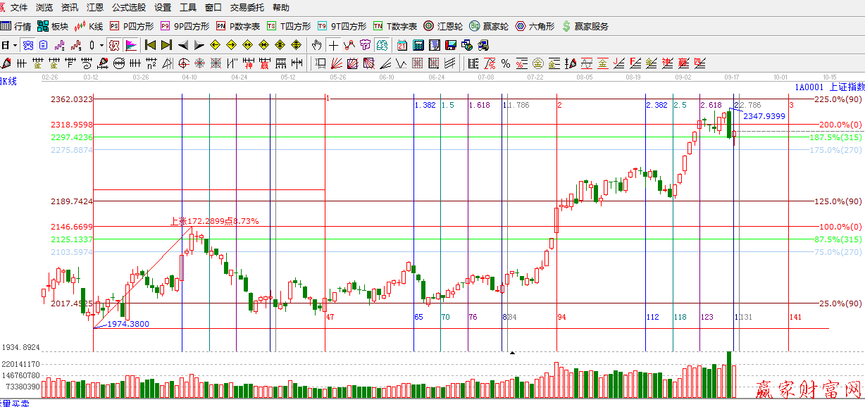 ☆依據贏家江恩系統黃金時間周期線提示:下一時間窗口是9月18日,9月25日。