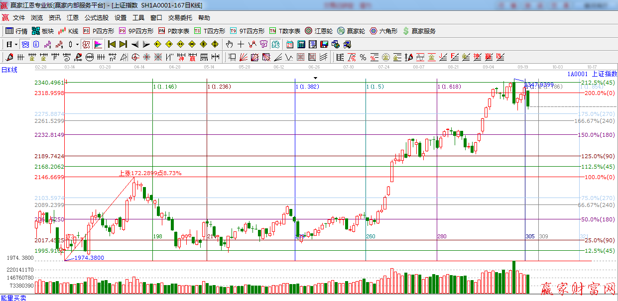 ★依據(jù)贏家江恩系統(tǒng)波段百分比提示:跌破0度2019點(diǎn),明日將要面臨的是270度位置2275點(diǎn)支撐,240度2261點(diǎn),上方阻力是2340點(diǎn)。