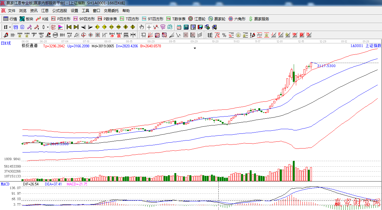 江恩看盤綜述:依據贏家江恩技術工具分析得出:近期盤面上,繼券商、保險等金融類藍籌股的強勢表現后,“中字頭”個股持續掀起漲停潮,成為市場的中流砥柱,短期仍將延續強勢格局,本周如量能持續指數站穩3100點,后期目標將是江恩120度3251點附近,近期難度大,特別是盤中的震蕩,建議投資者合理控制倉位。