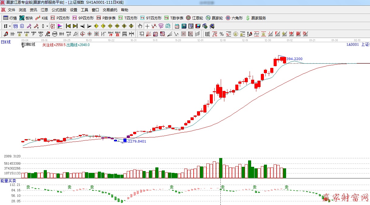 ☆依據贏家江恩系統能量買賣提示:處于多空臨界點,有“賣”字出現,短線謹慎為主。
