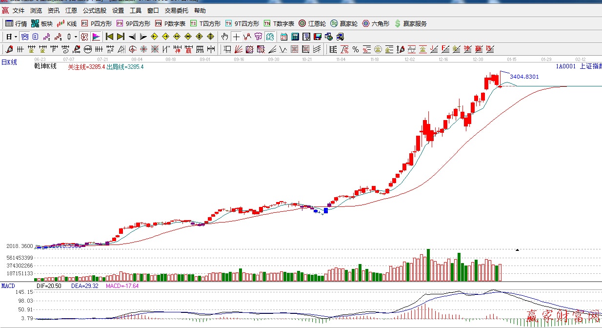 江恩看盤綜述:依據贏家江恩技術工具分析得出:圍繞江恩180度震蕩,缺口沒有回補,午后滬指強勢沖破3400點后回落,終盤以帶上影線十字星報收,指數逼空勢頭或將減弱,短期高位震蕩格局延續,但整體趨勢向好,下方支撐是缺口3239點,江恩90度位置3188點。操作上,金融股,煤炭、有色、化工都可逢低關注;而國企改革、一帶一路等近期或將持續。另外,傳媒、軍工等題財股也可適關注。