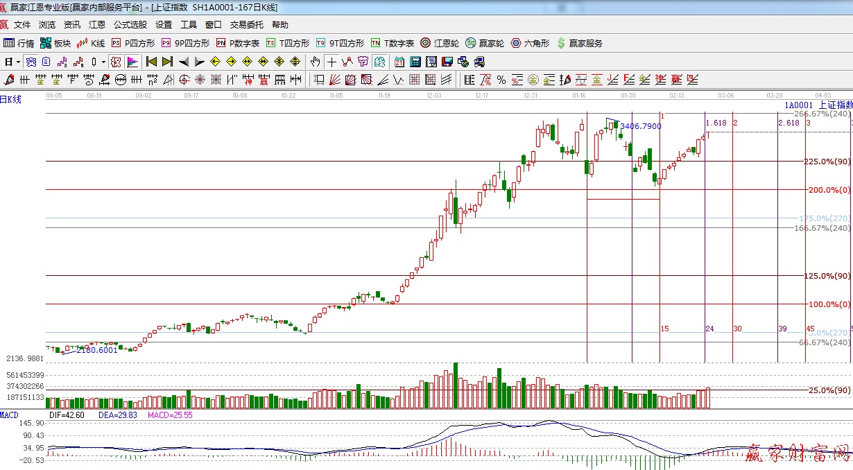 ☆依據贏家江恩理論系統黃金時間周期線提示:今日是前期提到的3月2時間窗口,下一個江恩時間窗口是3月9日。