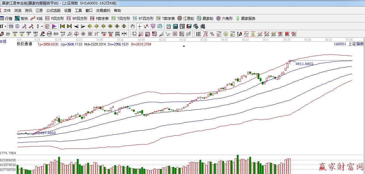 江恩看盤綜述:依據贏家江恩技術工具分析得出:周二滬深兩市持續強勢,午后權重股拉升,滬指沖上4900點,量能連續兩日突破兩萬 億,顯示整體人氣火爆,只要有量能支撐,牛市的進程將持續,不要去盲目的猜頂,但市場二八轉換的趨勢很明顯,充分把握主板的投資機會的同時,謹慎對待創業板。