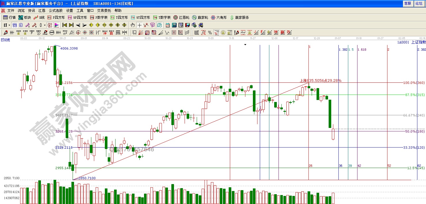 ☆ 依據(jù)贏家江恩理論系統(tǒng)江恩波段百分比線提示:周二滬指在3200附近止跌回升,明日阻力位留意 3328點,3407點附近。支撐留意180度3267點.