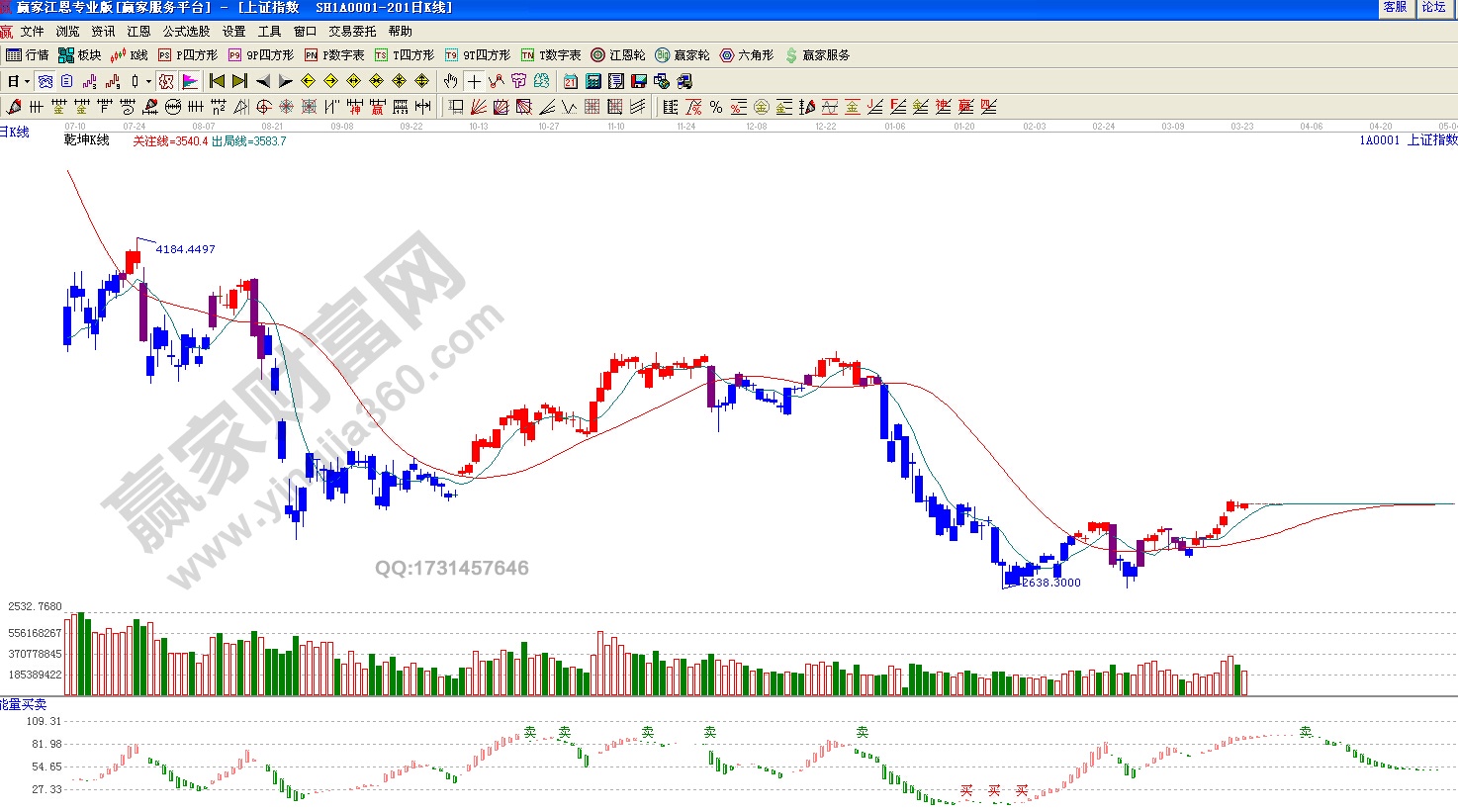 ★  依據(jù)贏家江恩理論系統(tǒng)能量買賣提示:紅色能量柱,看多。