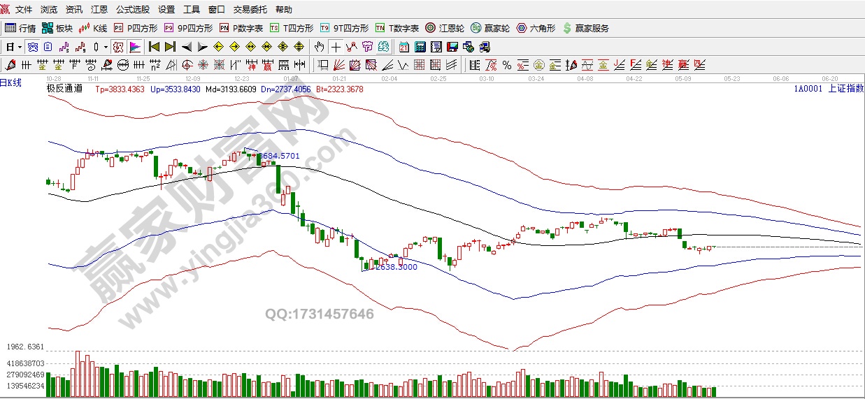 ☆依據贏家江恩理論系統極反通道提示:日線生命線之下,趨勢空。