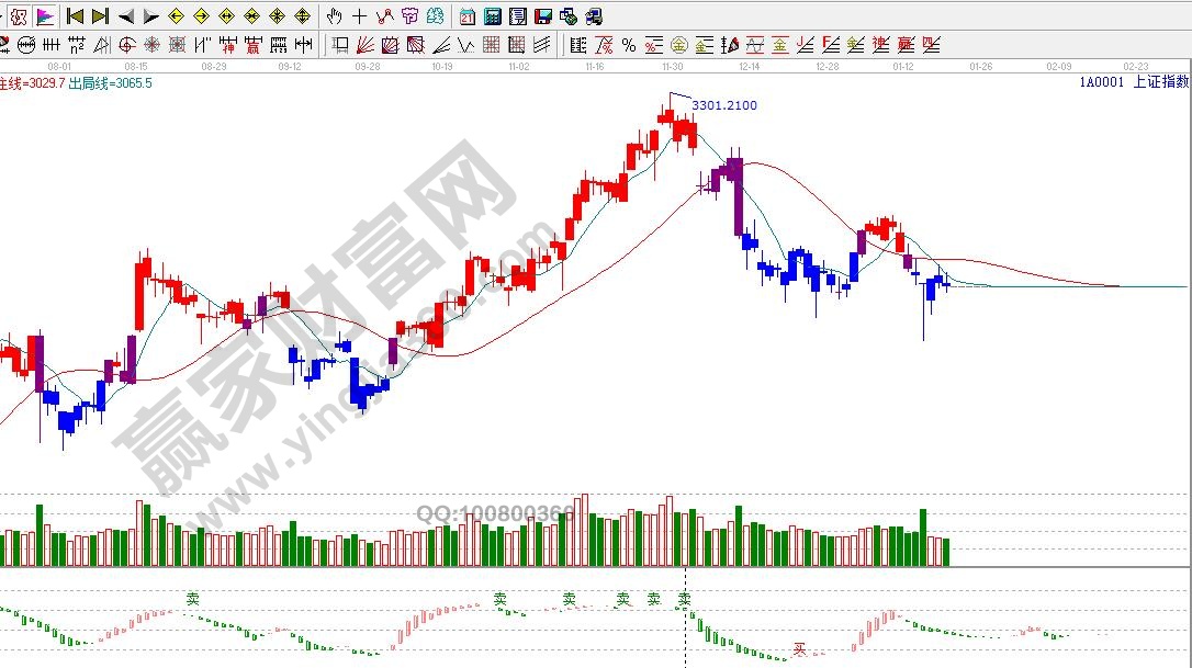☆依據贏家江恩理論系統乾坤K線提示:紅色關注線下方,處于藍色休息區域,依據規則,紅色關注線之下,看空。