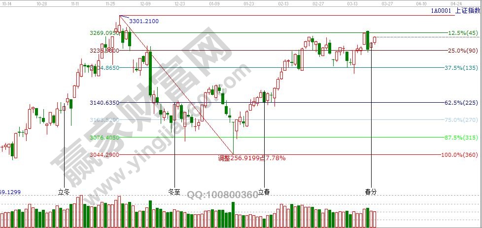 ☆依據贏家江恩理論系統江恩波段百分比線提示:周二,全天在3250點上方整理,突破短線3258點,接下來面臨日線45度線3269點,支撐3236點。