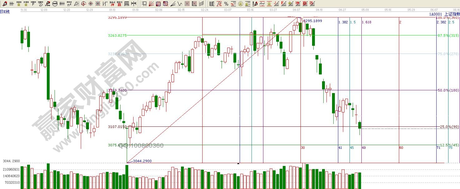 江恩看盤綜述:依據(jù)贏家江恩技術(shù)工具分析得出:周五,低開破位3116點(diǎn),反抽未能收復(fù),繼而下破3107點(diǎn),在年線3089點(diǎn)附近止跌小幅回升,這種走勢也是在預(yù)期之內(nèi)的,按照工具分析,下方百分比和極反通道支撐位在3075點(diǎn)附近,本周如有機(jī)會回踩到這個位置,可適當(dāng)加大倉位搏反彈,時間上,本周留意5月9日,操作上,重點(diǎn)關(guān)注雄安新區(qū)、一帶一路、央企改革標(biāo)。