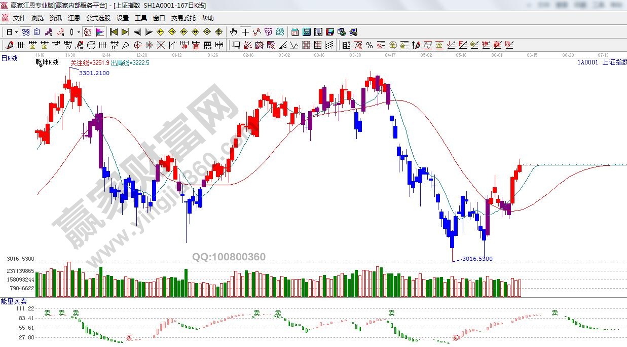 ☆依據贏家江恩理論系統能量買賣提示:紅色能量柱,依據規則,短線看多為主。