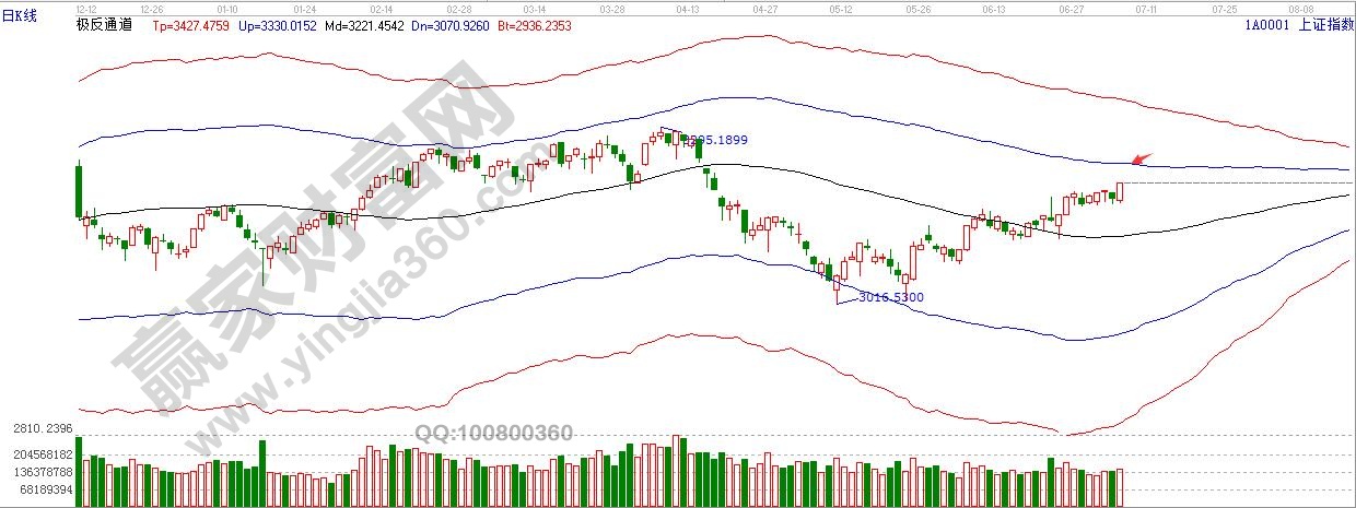 ★依據贏家江恩理論系統極反通道提示:滬指在半年線3174點位置止跌回升,強勢突破3200點,依據極反通道規則,滬指的上方目標位在3238點附近。