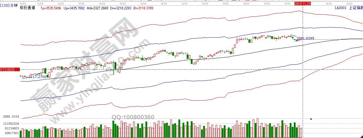 ★依據贏家江恩理論系統極反通道提示:大盤震蕩反彈,60分生命線3370點遇阻整理,下方120分生命線價格是3330點附近。