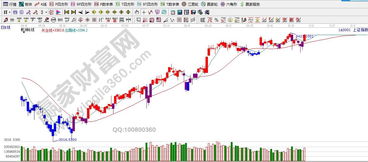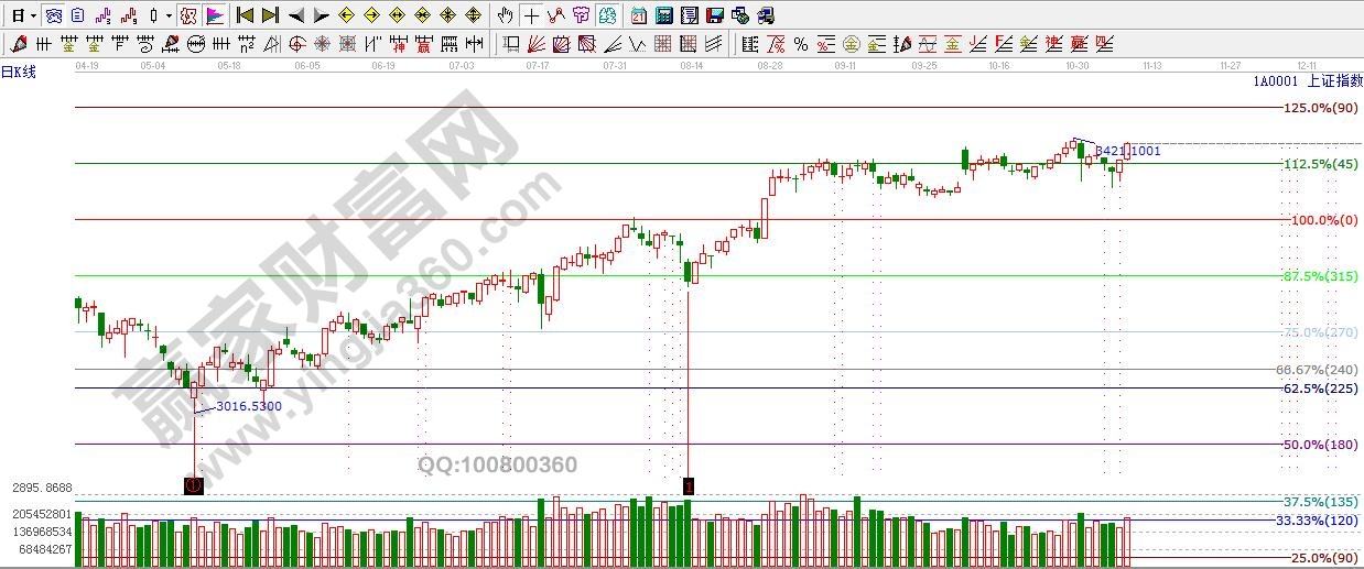 ☆依據贏家江恩理論系統江恩波段百分比提示:滬指延續強勢,3396點,3384點轉變為支撐位,阻力位3420點,3436點.