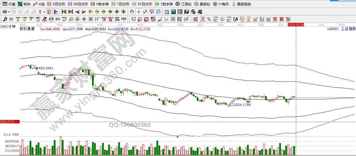 江恩看盤綜述:依據贏家江恩技術工具分析得出:周四,滬指探底回升,重新收在60分生命線之上。整體仍在震蕩區間徘徊,盤面上種種跡象表明,指數調整空間已經被基本封殺,如伴隨量能的配合有效突破3305點,指數將結束調整迎來反彈。周線時間窗口臨近,耐心觀察,等待確認性的轉折出現,如能有效放量,或將釋放指數見底信號。操作上,逢低可考慮分批低吸。