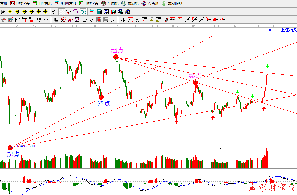 江恩角度線,而且相比角度線,該工具是由3條阻力線組成。盡管如此,在實際操盤中,該工具同樣不停的給我帶來震撼。眾所周知,對于技術分析者來說,把握趨勢就相當于把握了股票漲跌的命脈,那么,速度阻力線在實際操作中是如何應用的呢?筆者為了方便大家的理解,下面再次對該工具的原理及用法詳細闡述下,同時以上證指數為例解析速度阻力線在實戰中的應用。