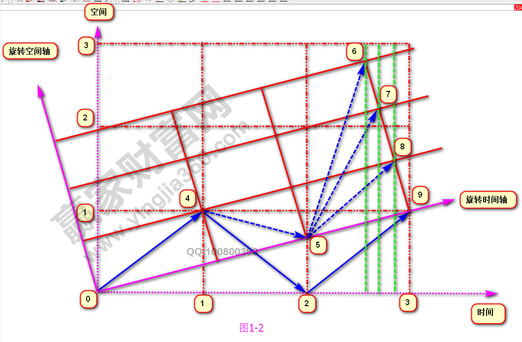 這張圖一旦做出來,我想也就不需要闡述太多了。股價由于諸多因素(比如主力的建倉行為)導(dǎo)致實際的真實走勢應(yīng)該是:0456、0457或者0458這樣而不是0429這種理想的。0456也好,0457也罷,實際也是一種動態(tài)平衡系統(tǒng)。我們不知道外因?qū)е?429系統(tǒng)內(nèi)部多空力量失衡多少,但他一定是可以量化的。這個量化的體現(xiàn)就是:時間軸和空間軸偏轉(zhuǎn)的角度,所以說時間、空間、角度是江恩理論的三要素,而時間是最重要的。45678的時間是定的,江恩用數(shù)學、幾何將這些外因數(shù)字化、模型化、量化,再大的利好也不能讓股價無限制漲到外太空,因為時間是定數(shù)!!!這就是摯愛成就夢想里的時空隧道,這就是輪中之輪,規(guī)矩之外的規(guī)矩,平衡之外的平衡,圈子之外的圈子!!!