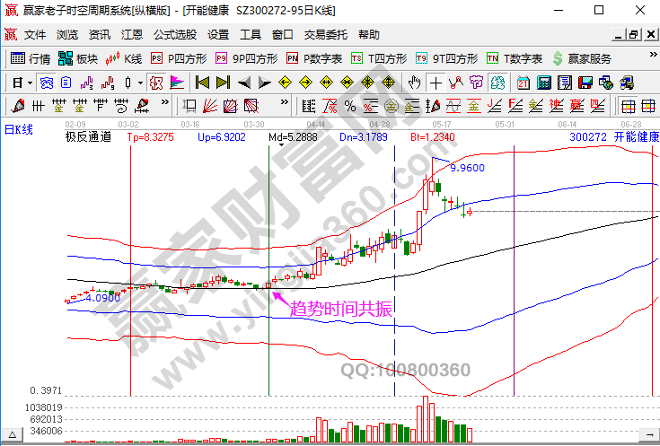 300272開能健康在贏家極反通道生命線獲得支撐,在4月1日老子周期數(shù)列時間窗口啟動拉升,如在4月1日最低點買入,在5月13日最高點賣出,27個交易日獲利可達114%。