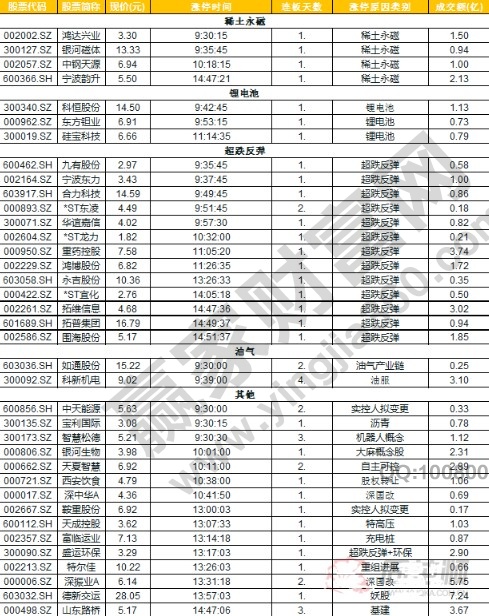 盤面上,前期大妖股德新交運(603032)午后卷土重來,再度漲停封板;攀鋼釩鈦(000629)連續兩日大漲,今日一度逼近漲停,隨后下行至平盤附近,同期恢復上市的重藥控股(000950)今日強勢封板;美加征關稅清單去除稀土,稀土永磁板塊全線走強,鴻達興業(002002)、中鋼天源(002057)等多股漲停;瀝青價格突破三年歷史新高,寶利國際(300135)漲停;深圳板塊異軍突起,深中華A(000017)、深振業A直線拉板。