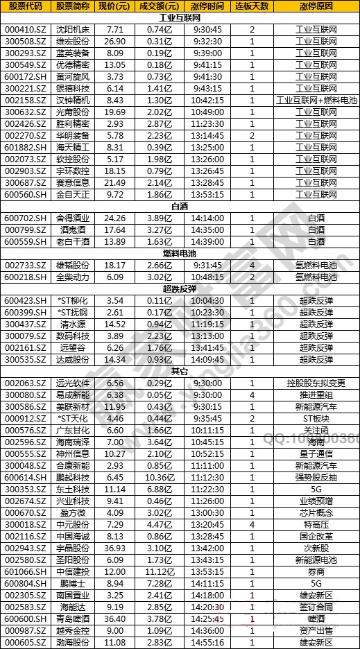 工業互聯網、白酒、燃料電池 封板效率:較高