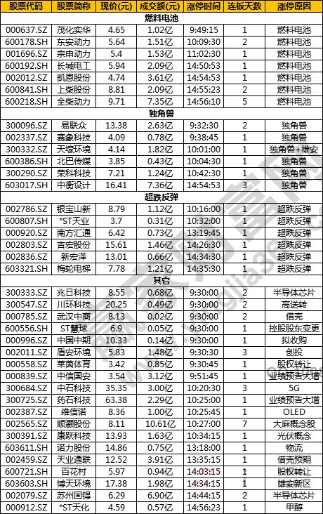 主流看點(diǎn):燃料電池、獨(dú)角獸、超跌反彈 封板效率:較高