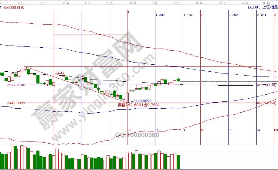 上周五分析中談到本周29號時間窗口,壓力2635點(diǎn)不能突破則短線將進(jìn)入調(diào)整,市場將形成短線拐點(diǎn),再度回探日線生命線2572點(diǎn)。空間方面,波段百分比顯示,昨天高點(diǎn)2630與180度壓力2634點(diǎn)僅相差4個點(diǎn),29號支撐是225度(2585點(diǎn))、240度(2569點(diǎn)),29號是假期前最后一個時間窗口,下個時間窗是2月4號,因假期向后推遲。操作策略,大盤日線生命線上運(yùn)行波段看多,這里是短線回調(diào),不改變波段上漲判斷,調(diào)整對于空倉者是一次建倉機(jī)會,對于高倉位者是一次調(diào)倉機(jī)會。
