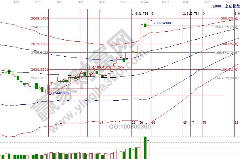 28號是大盤日線時間窗口,繼續觀察市場橫盤后短線方向選擇,依據規則紅色外軌線為短線風險區,空間點位上,江恩百分比、價格四方形顯示,28號2914、2925點為支撐,2974、2999點為壓力,3月份第一個時間窗口是7號。操作策略,大盤日K線突破紅色外軌線,注意時間窗口后遇反壓力風險,持股上享受瘋狂的同時不斷提高止賺位策略,即保護了利潤又可將利潤最大化,或主動分批高拋紅色外軌線個股,拋售倉位等待市場回歸通道內在做決策是否參與,整體倉位保持在6成左右。