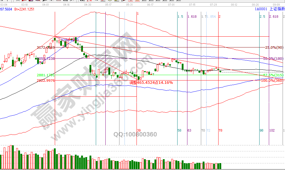 2966是近期一直強(qiáng)調(diào)的反彈重要阻力位,30號(hào)上攻到2965.6(精準(zhǔn)無(wú)誤差)后如期受阻回落,再次彰顯江恩對(duì)價(jià)格點(diǎn)位的精準(zhǔn)計(jì)算。按照規(guī)則壓力位下逢高兌現(xiàn)不開(kāi)新倉(cāng),等待8月1日時(shí)間窗口。1號(hào)時(shí)間窗,指數(shù)失收生命線,趨勢(shì)再度轉(zhuǎn)弱。8月2號(hào)盤(pán)中壓力是135度2911點(diǎn)、180度2928點(diǎn),盤(pán)中支撐是90度2894點(diǎn)、45度2877點(diǎn)。操作策略,指數(shù)失守日線生命線,失守60分鐘生命線,穩(wěn)健者繼續(xù)休息,等待新的交易信號(hào)出現(xiàn)。整體倉(cāng)位控制在3成內(nèi)。