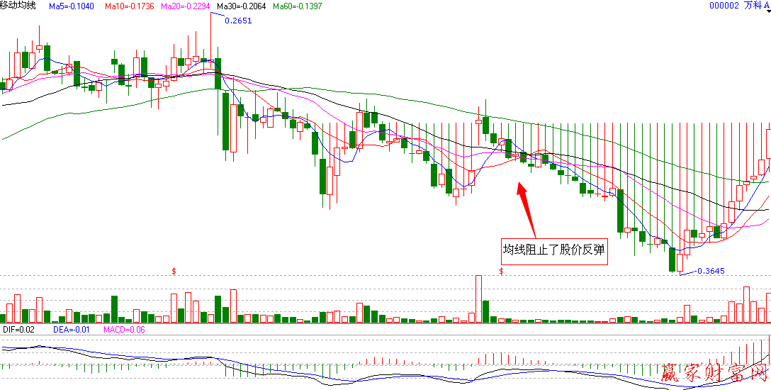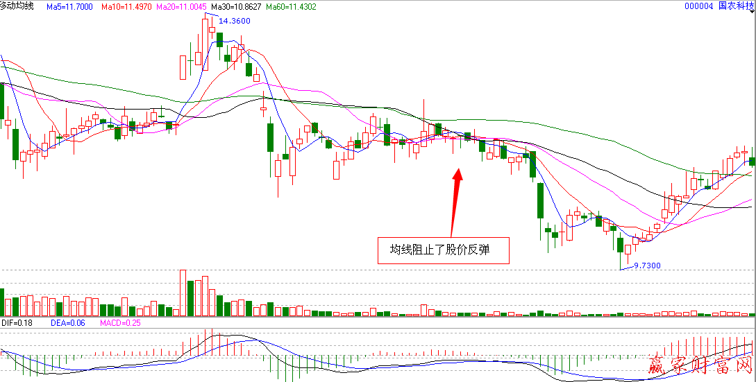 股市中分析的工具多種多樣,掌握其中任何一種都輕而易舉地獲利,相信在對股票基礎(chǔ)知識的學(xué)習(xí)中,大家都已經(jīng)了解到均線的作用之大。那么今天就為大家介紹均線的其中一種賣出信號——股價反彈受阻于移動平均線。