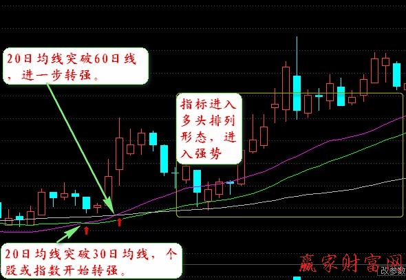 1.關(guān)注大盤(pán)以及個(gè)股的變化情況是每個(gè)投資者都應(yīng)該做的一件事情,而我們判斷大盤(pán)以及個(gè)股的唯一標(biāo)準(zhǔn)就是它到底是由強(qiáng)勢(shì)轉(zhuǎn)為弱勢(shì),或者是由弱勢(shì)轉(zhuǎn)為強(qiáng)勢(shì)。首先,我們要向大家講述一下弱勢(shì)階段轉(zhuǎn)為強(qiáng)勢(shì)階段的股市變化狀況,通常來(lái)講的它往往有個(gè)過(guò)渡時(shí)期,需要投資者耐心的去關(guān)注才能夠更好的認(rèn)清其狀況。當(dāng)大盤(pán)日K線上的20日均線彎曲向上與30日均線形成金叉時(shí),意味著大盤(pán)開(kāi)始轉(zhuǎn)強(qiáng),此時(shí)投資者應(yīng)該有所動(dòng)作,及時(shí)入市,等待下一步股市的繼續(xù)上漲。而當(dāng)我們看到20日均線繼續(xù)上攻與60日均線形成金叉時(shí)的時(shí)候,此信號(hào)向我們傳達(dá)了一個(gè)十分重要信號(hào),那就是大盤(pán)進(jìn)一步轉(zhuǎn)強(qiáng),此時(shí)投資者可以斷定股市即將可能會(huì)出現(xiàn)一輪強(qiáng)勢(shì)的上漲趨勢(shì)。但是,此時(shí)投資者還要繼續(xù)關(guān)注股市的下一步變化,那就是20日、30日、60日均線都呈多頭排列時(shí),才標(biāo)志著大盤(pán)已進(jìn)入了強(qiáng)勢(shì)階段,通常此時(shí)的投資者會(huì)認(rèn)為此時(shí)自己的決定早已經(jīng)毫無(wú)后顧之憂(yōu),其實(shí)不然,因?yàn)榇藭r(shí)的趨勢(shì)并不算穩(wěn)定,有夭折的危險(xiǎn),因此投資者在此時(shí)應(yīng)該謹(jǐn)慎操作,這樣才能夠成功盈利。