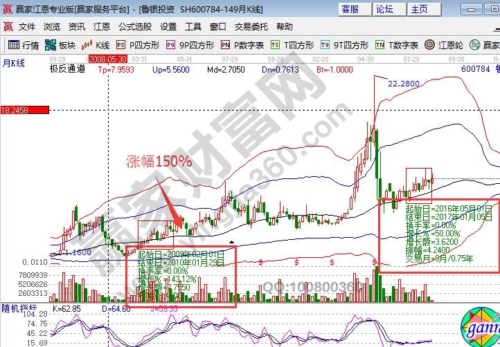 月K線KDJ金叉需結(jié)合股票趨勢來定義操作性,此金叉是在零軸以下超跌類,還是零軸至20區(qū)間的最佳參與區(qū),或者是50以上頂?shù)装朕D(zhuǎn)化情況;主編通過600784魯銀投資月線KDJ及K線走勢來講解幾種情況。