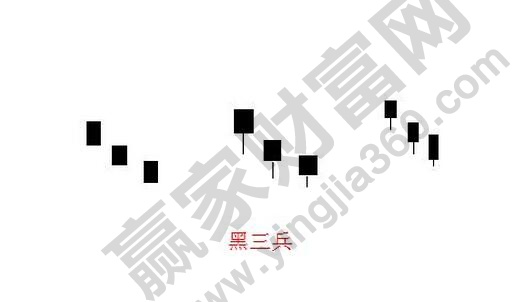 三根中陰線組成黑三兵,陰線的開盤價(jià)切入前一天的陰線,上影線以及下影線,短點(diǎn)比較好,如果是高位出現(xiàn)黑三兵,就要小心股價(jià)下跌的趨勢(shì)。