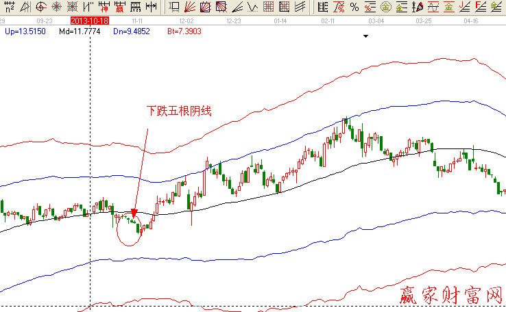 需要知道的是,如果五根陰線之后沒有出現(xiàn)大陰線,而是以多根小陰線代替,或者五根陰線中有一根陽線,只要股價出現(xiàn)見底跡象,一樣可以買入。