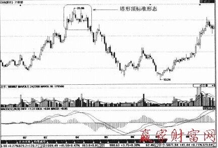 從圖3中可以看到,此股在高位區城出現了兩個塔形頂,(也可以看做是雙頂)之后股價步入一輪熊市,可見塔形頂的見頂信號是非常強烈的,只有盡早離場才是正確的選擇。