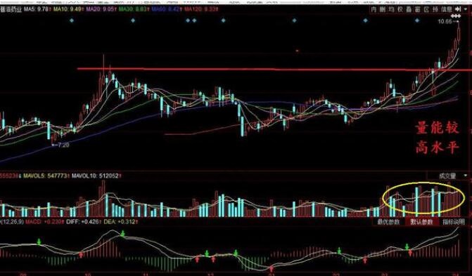 以漲停為前導,股票價格在長陽實體上方作橫向整理,在回靠十日均線的時候稍作停留之后以陰線下穿,五日均線十日均線死叉,20日均線30日均線趕上,企穩就會以陽線形式向上大漲,量度漲幅超過10%。最好的買入時機是五日均量線和40日均量線粘合的時候。