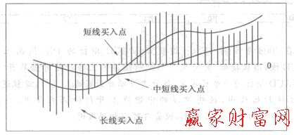 4.當(dāng)DIF線和MACD線分別向上突破0軸線,表明該股的中短期強勢拉升行情正在展開,這是日MACD指標(biāo)顯示的第四個買入點,是一種短線買入點,激進的投資者可以短線加碼買入。如圖下圖所示。在不同個股走勢中,上述四個買入點的先后順序會有所不同,但這不影響投資決策。