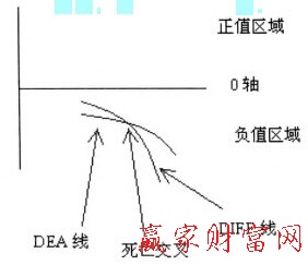 MACD調(diào)頭向下也可以發(fā)生在負(fù)值區(qū)域,即在0軸下方運(yùn)行。出現(xiàn)MACD調(diào)整向下,表示反彈結(jié)束,這時(shí)投資者要果斷拋空,如圖所示。