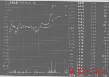 高新發展股價在2009年4月28日短期見底,受到60日平均線的支撐,同時成交量較前3天有所萎縮,從MACD指標看,白線達到0軸之上且綠柱短期最長,有止跌的趨勢,從K線圖上看收出紅十字星,經過4天的上漲股價位于6.03附近,并且沿著5日平均線運行,MACD指標已經顯示該股綠往縮短。這時,股民就應該密切關注。經過兩天的平臺整理后,于5月8日股價沿5日線有效擊穿60日線,MACD指標仰頭向上,紅柱開始出現。這時,我們就可以大膽介入。如圖1所示。